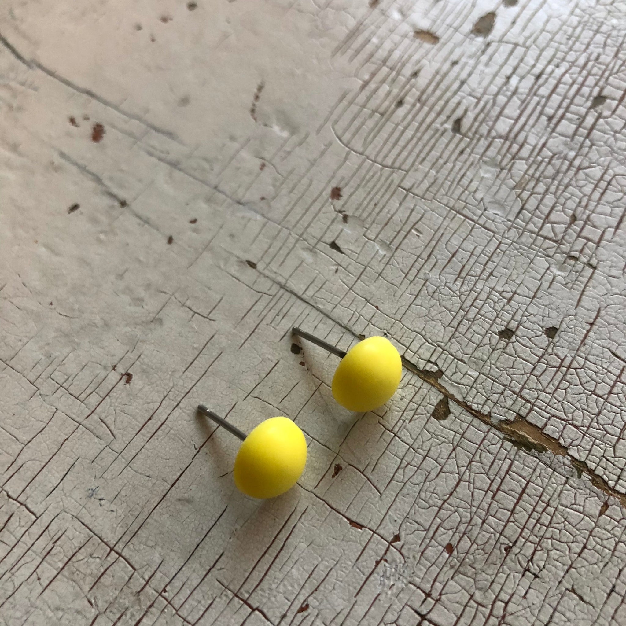 Yellow stud earrings in a fantastic size and a matte inish. This style is known as the 'Retro Button Stud' earring & comes in loads of colors & sizes. Each stud earring measures about 9mm in diameter.