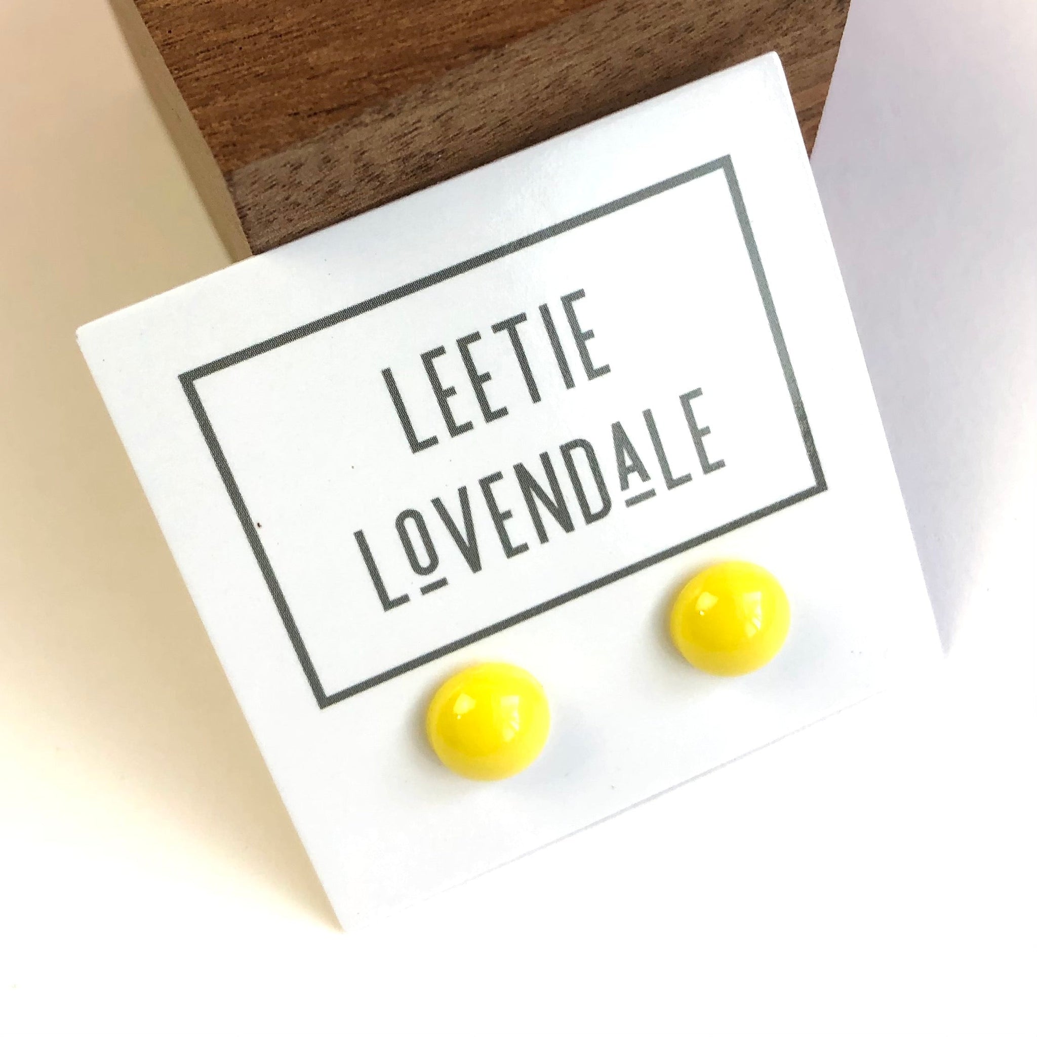 Yellow stud earrings in a fantastic size and a shiny opaque finish. This style is known as the 'Retro Button Stud' earring & comes in loads of colors & sizes. Each stud earring measures about 9mm in diameter.