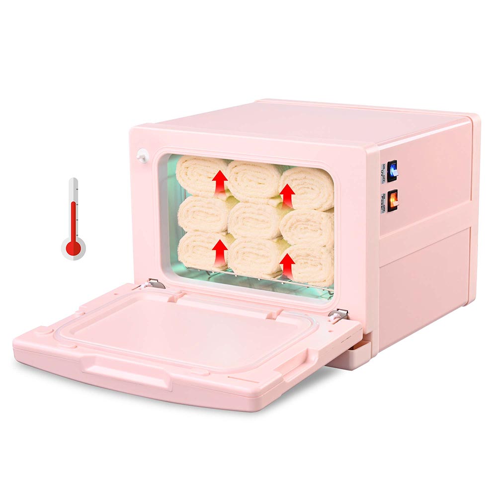 Yescom 8L 2-in-1 Hot Towel Heater in cherry blossom pink is the perfect addition to your beauty tools. Combining heating and UV lamp functions, it provides fast and thorough heating for effective towel and tool cleaning. Ideal for hair salons, spas, barber shops, gyms and more.