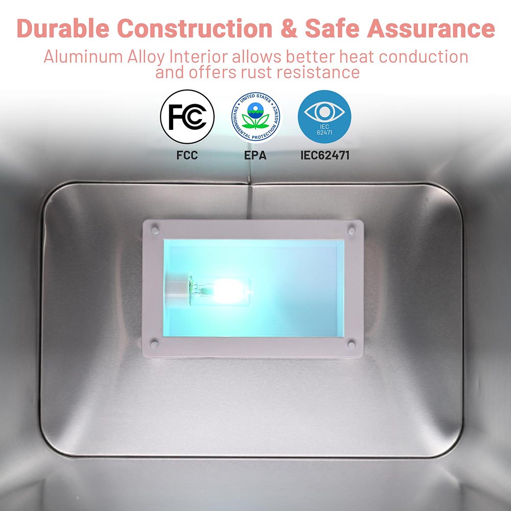 - Control heating temperature and UV light separately via switches, ideal for cleaning beauty tools