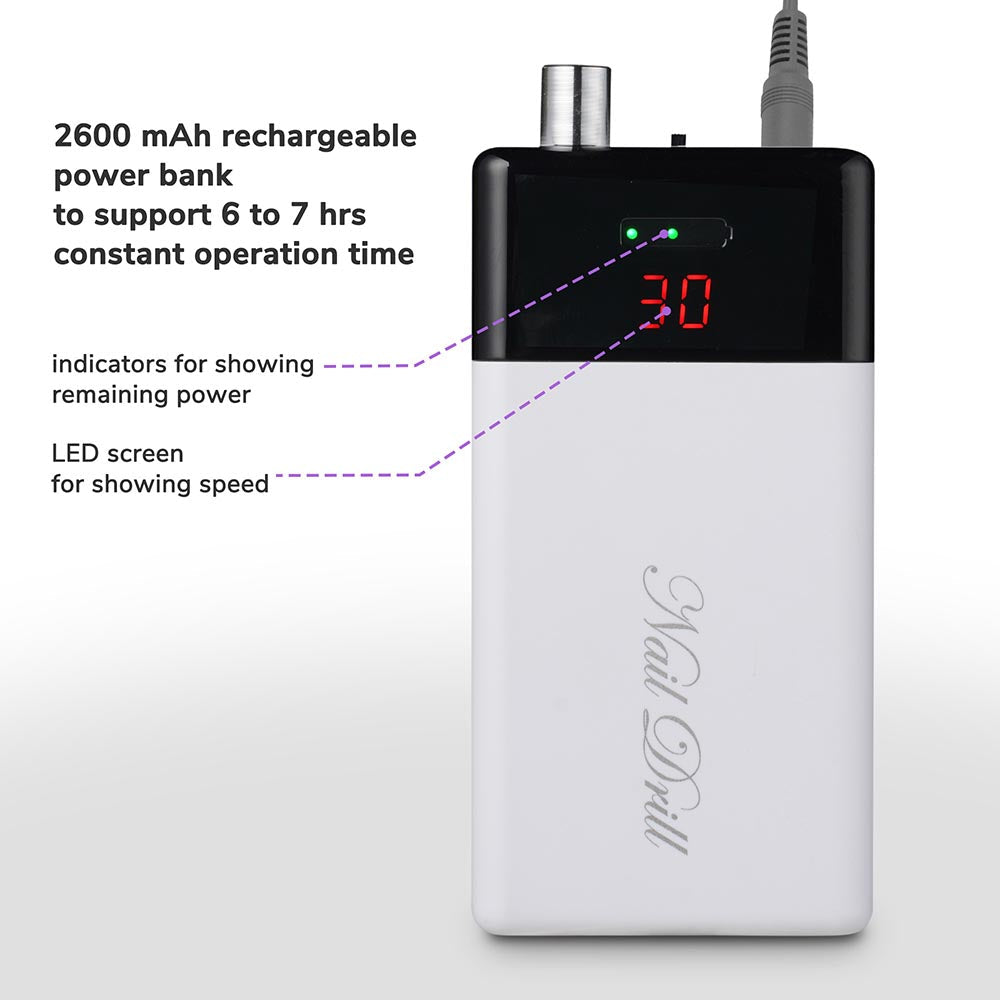 - 2600 mAh rechargeable nail drill machine can last up to 8 hours of operation