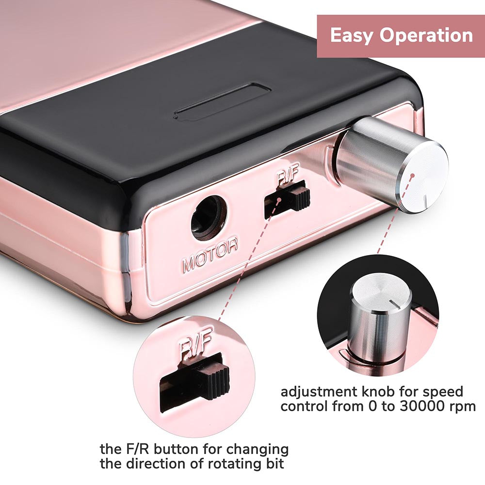 -Prep nails, acrylic nails, thick nails, gel nails, dipped nails, dead skin & callus removal, etc. - Nail drill machine with LED screen for easily monitoring the variable speed from 0 to 30000 rpm
