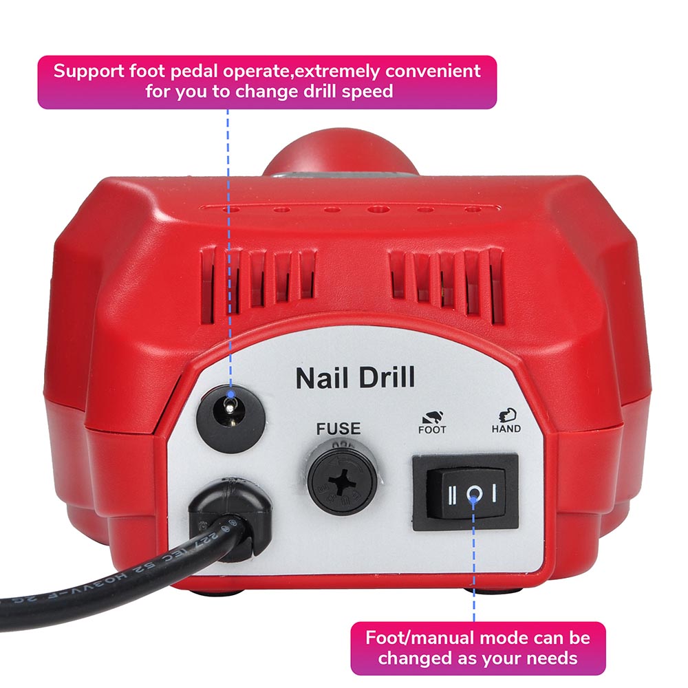 You are viewing an professional electric nail drill machine with foot pedal control which is great for all types of nail work from sculpting, buffing, to polishing.