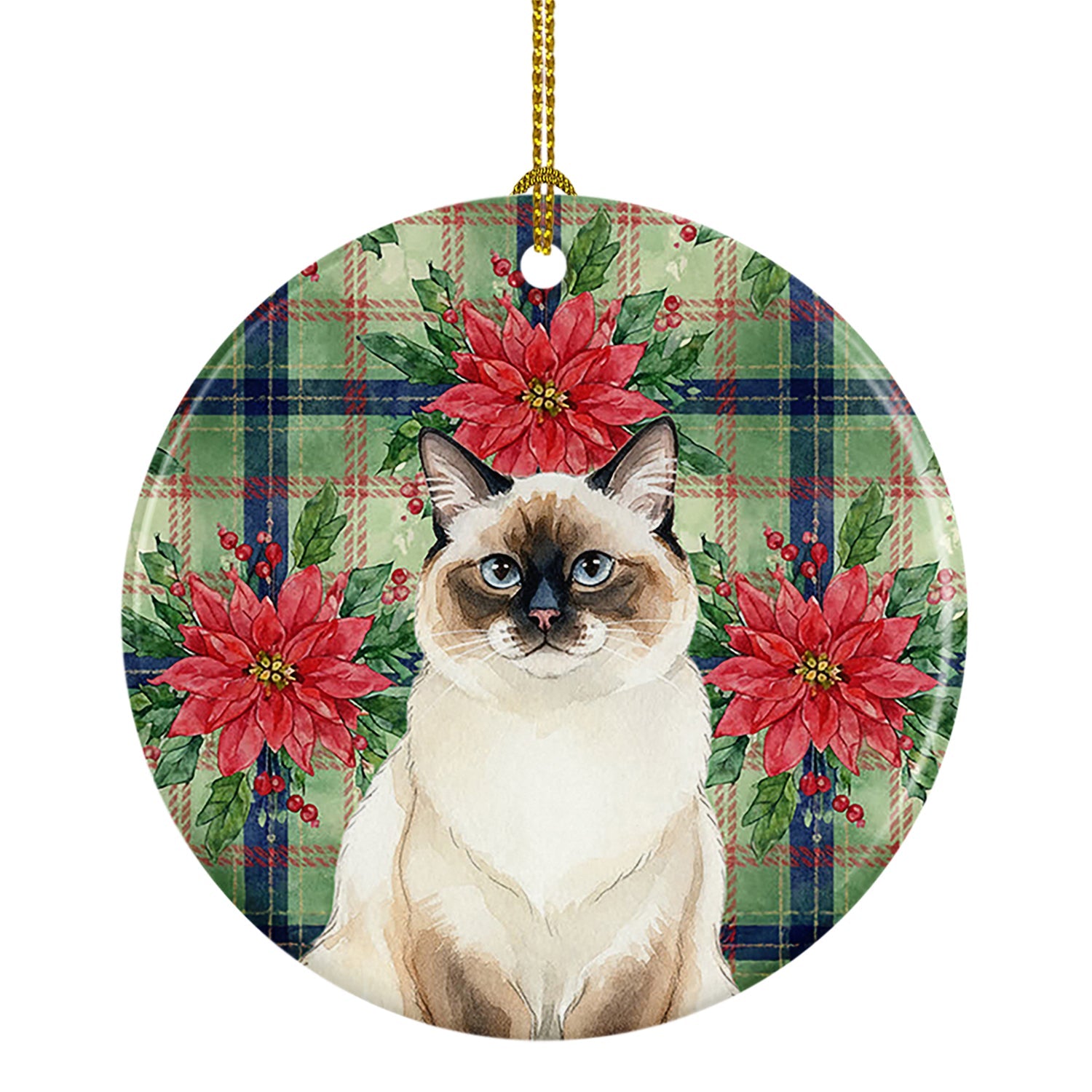 Ragdoll Seal Point Cat with Poinsettias Ceramic Ornament