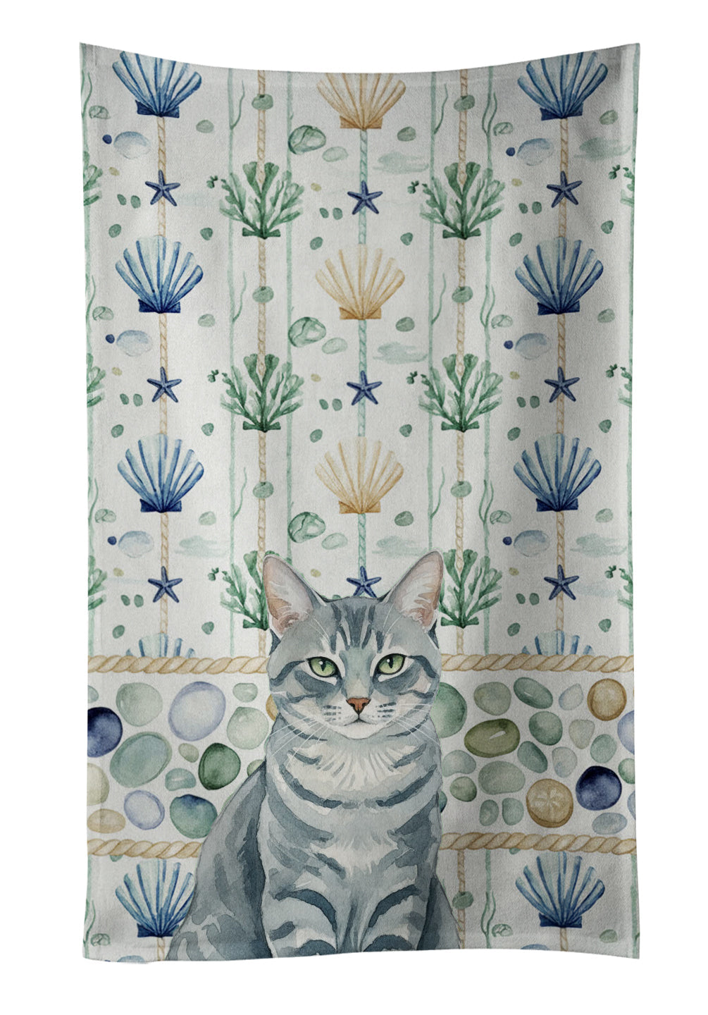 Kitchen Towel featuring breed specific Gray Mackerel Tabby artwork. Bring cozy everyday charm to your sink or powder room with a plush velour towel featuring original watercolor artwork. The front is a soft, color-rich minky polyester that polishes glassware to a brilliant shine; the back is 100% white cotton terry loop for quick absorbency on hands, dishes, and counters. Artwork is dyed into the fibers for lasting color that won’t crack or peel. Finished edges keep the shape wash after wash. Size: 15" x 25". Machine wash; tumble dry low. Designed and printed in the USA.