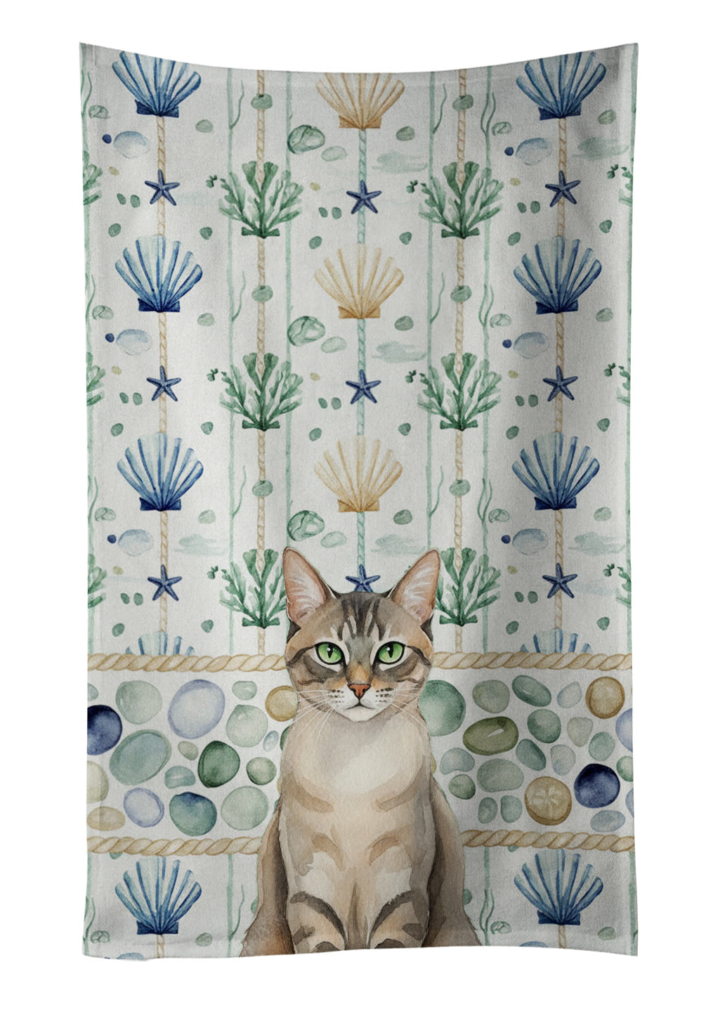 Kitchen Towel featuring breed specific Lynx Point Tabby artwork. Bring cozy everyday charm to your sink or powder room with a plush velour towel featuring original watercolor artwork. The front is a soft, color-rich minky polyester that polishes glassware to a brilliant shine; the back is 100% white cotton terry loop for quick absorbency on hands, dishes, and counters. Artwork is dyed into the fibers for lasting color that won’t crack or peel. Finished edges keep the shape wash after wash. Size: 15" x 25". Machine wash; tumble dry low. Designed and printed in the USA.
