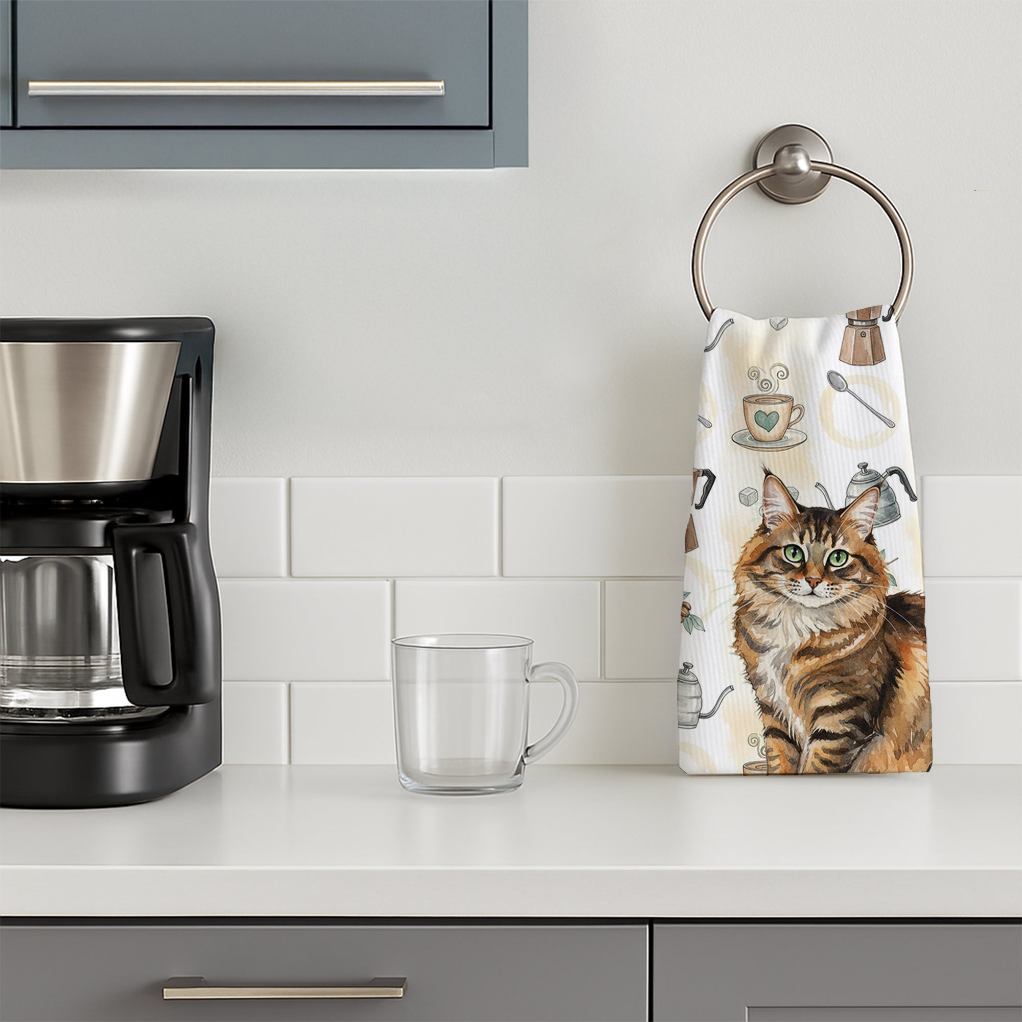 Kitchen Towel featuring breed specific Norwegian Forest Cat Brown Tabby artwork. Celebrate Christmas with this Christmas Kitchen Towel. Bring cozy everyday charm to your sink or powder room with a plush velour towel featuring original watercolor artwork. The front is a soft, color-rich minky polyester that polishes glassware to a brilliant shine; the back is 100% white cotton terry loop for quick absorbency on hands, dishes, and counters. Artwork is dyed into the fibers for lasting color that won’t crack or peel. Finished edges keep the shape wash after wash. Size: 15" x 25". Machine wash; tumble dry low. Designed and printed in the USA.