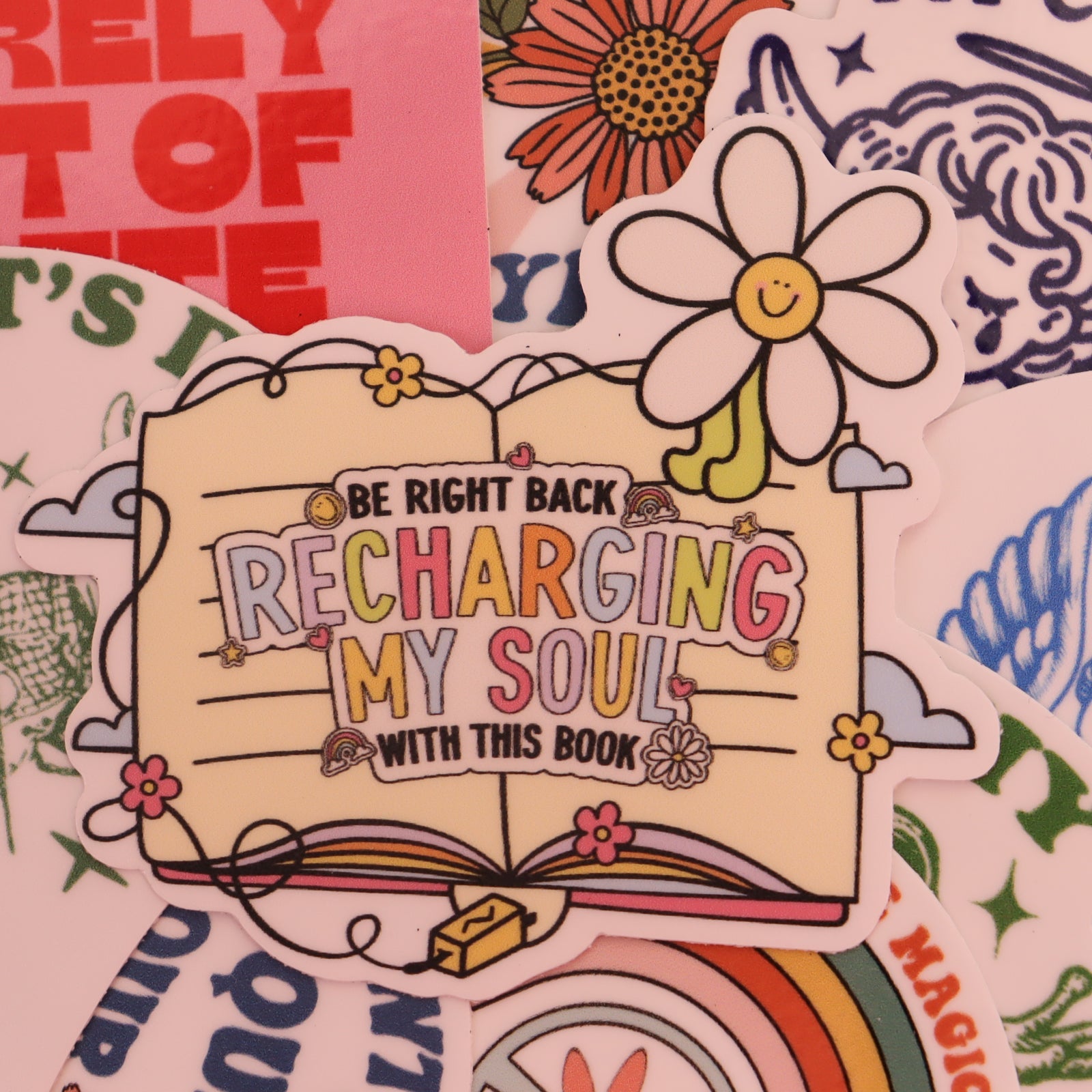 Refresh your soul with our "BRB...Recharging My Soul" Bookish Sticker, featuring happy pastel colors and a bright smiling flower. Express your love for reading and spread positivity with this charming sticker!