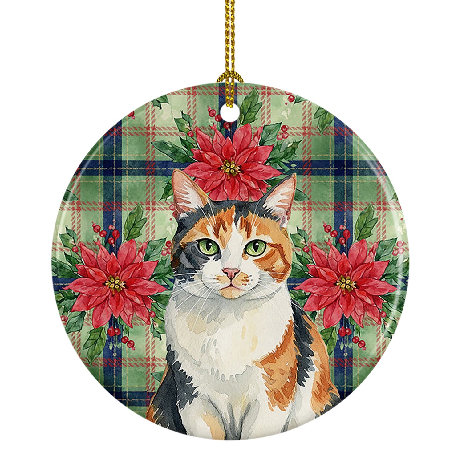 Ceramic Ornament featuring breed specific Calico artwork. Celebrate Christmas with this Christmas Ornament. Add a touch of personalized charm to your Christmas tree this holiday season with our Ceramic Ornament. Measuring 2.8125 inches in diameter, this round porcelain ornament beautifully reflects your festive lights, enhancing your holiday decor. The gloss surface sets off the vibrant, full-color artwork contributed by one of our talented artists, bringing a pop of color and joy to your tree. This Ceramic Ornament doesn't stop at being merely decorative. The white back is designed for personalization. Write a heartfelt message, mark a special year, or inscribe a date with a paint pen or a permanent marker to create a treasured memento. Please ensure you allow any personalization to dry thoroughly before handling to maintain the pristine finish. Included with the ornament is a delicate gold cord for easy hanging. Made in the USA, this Ceramic Ornament makes an exceptional gift for a pet sitter, teacher, family member, or anyone you wish to share a little Christmas magic with. With its blend of style, charm, and personal touch, it's a meaningful addition to any Christmas tree.