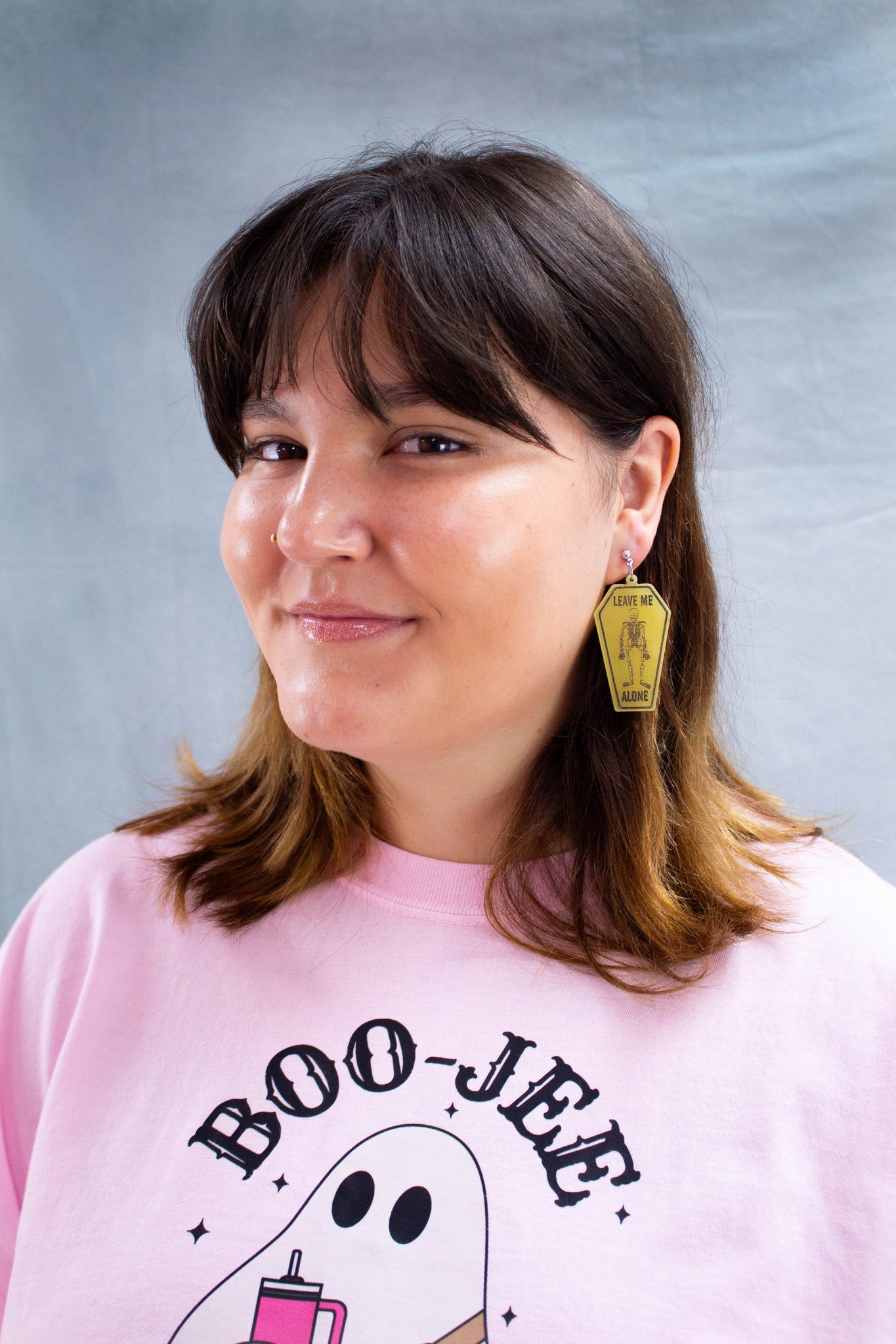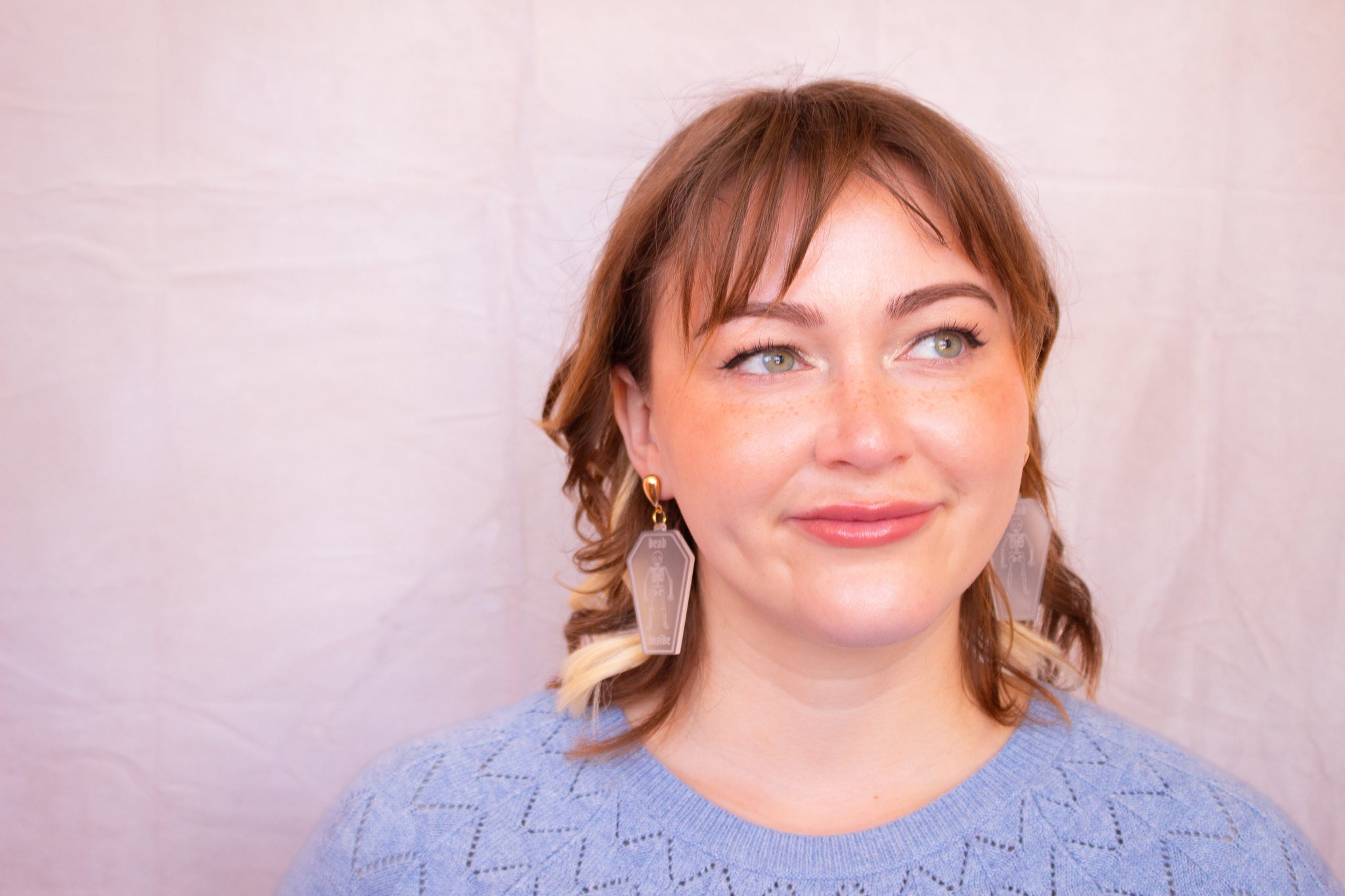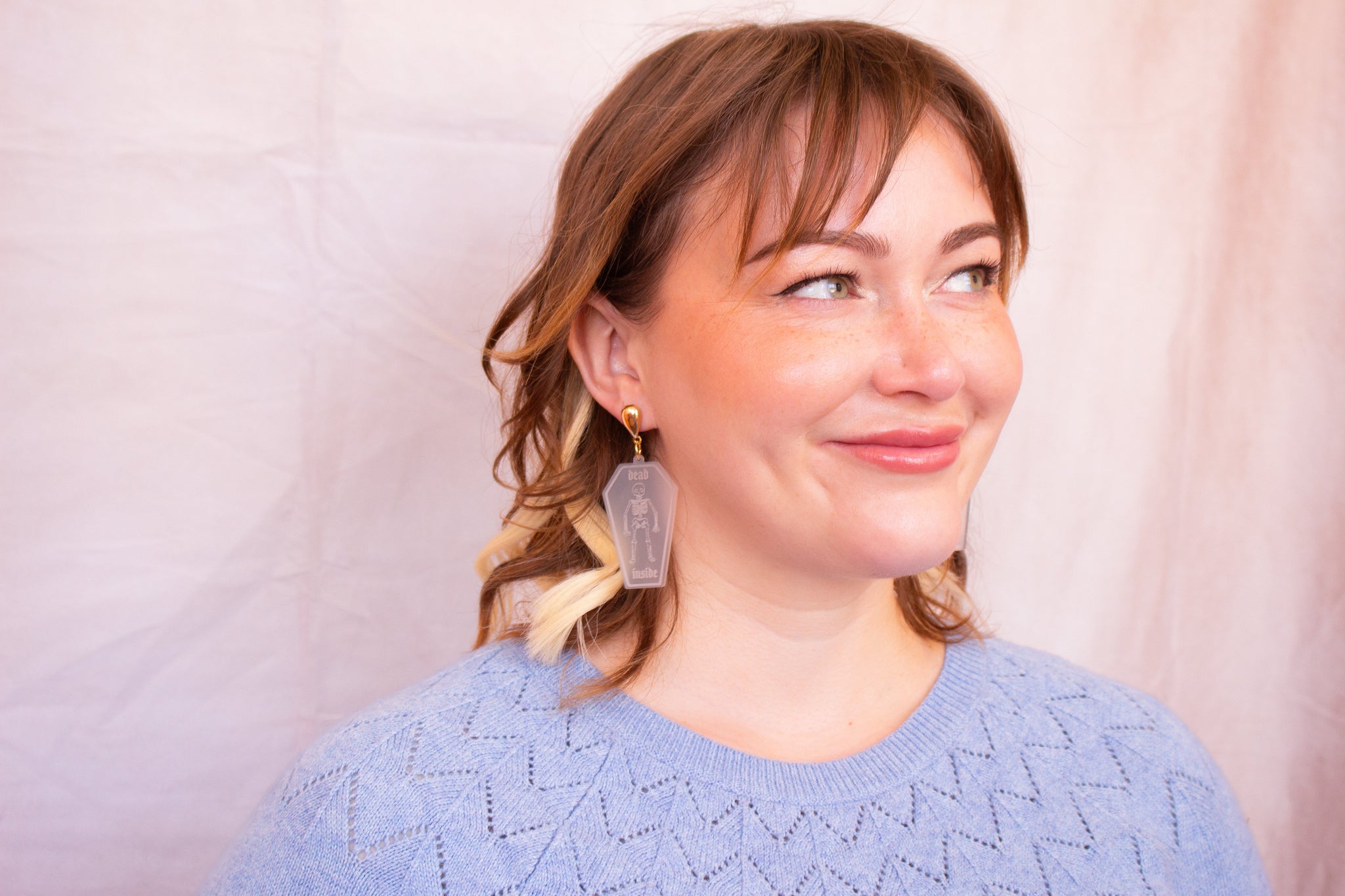 Add some dark humor to your wardrobe with our "Dead Inside" tombstone earrings. These casket-shaped earrings feature a skeleton design and the phrase "dead inside" engraved. Perfect for those who don't take themselves too seriously (or for Halloween).