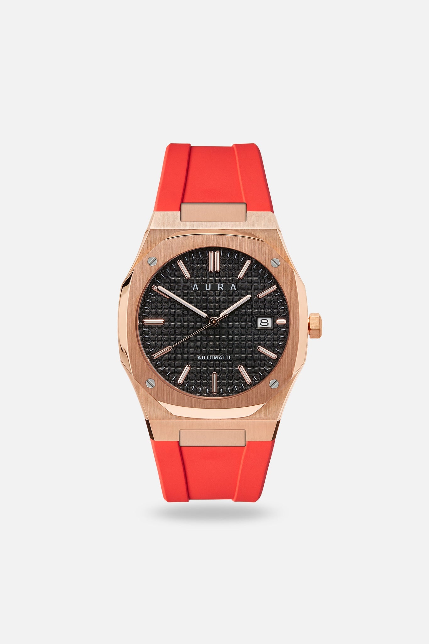 Aura FKM Rubber Straps are made from the highest quality FKM material for maximum comfort and durability, and feature stainless steel butterfly clasps. Each FKM Strap is compatible with all AURA Automatic Watches such as Skeleton, Date, and 1023 watch models. Personalize your collection, express your individuality, and show your AURA with these bold, fashionable, and functional straps.Â