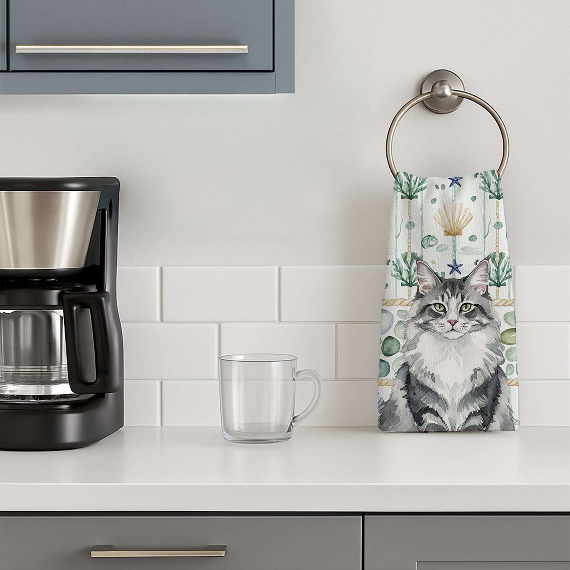 Kitchen Towel featuring breed specific Norwegian Forest Cat artwork. Bring cozy everyday charm to your sink or powder room with a plush velour towel featuring original watercolor artwork. The front is a soft, color-rich minky polyester that polishes glassware to a brilliant shine; the back is 100% white cotton terry loop for quick absorbency on hands, dishes, and counters. Artwork is dyed into the fibers for lasting color that won’t crack or peel. Finished edges keep the shape wash after wash. Size: 15" x 25". Machine wash; tumble dry low. Designed and printed in the USA.
