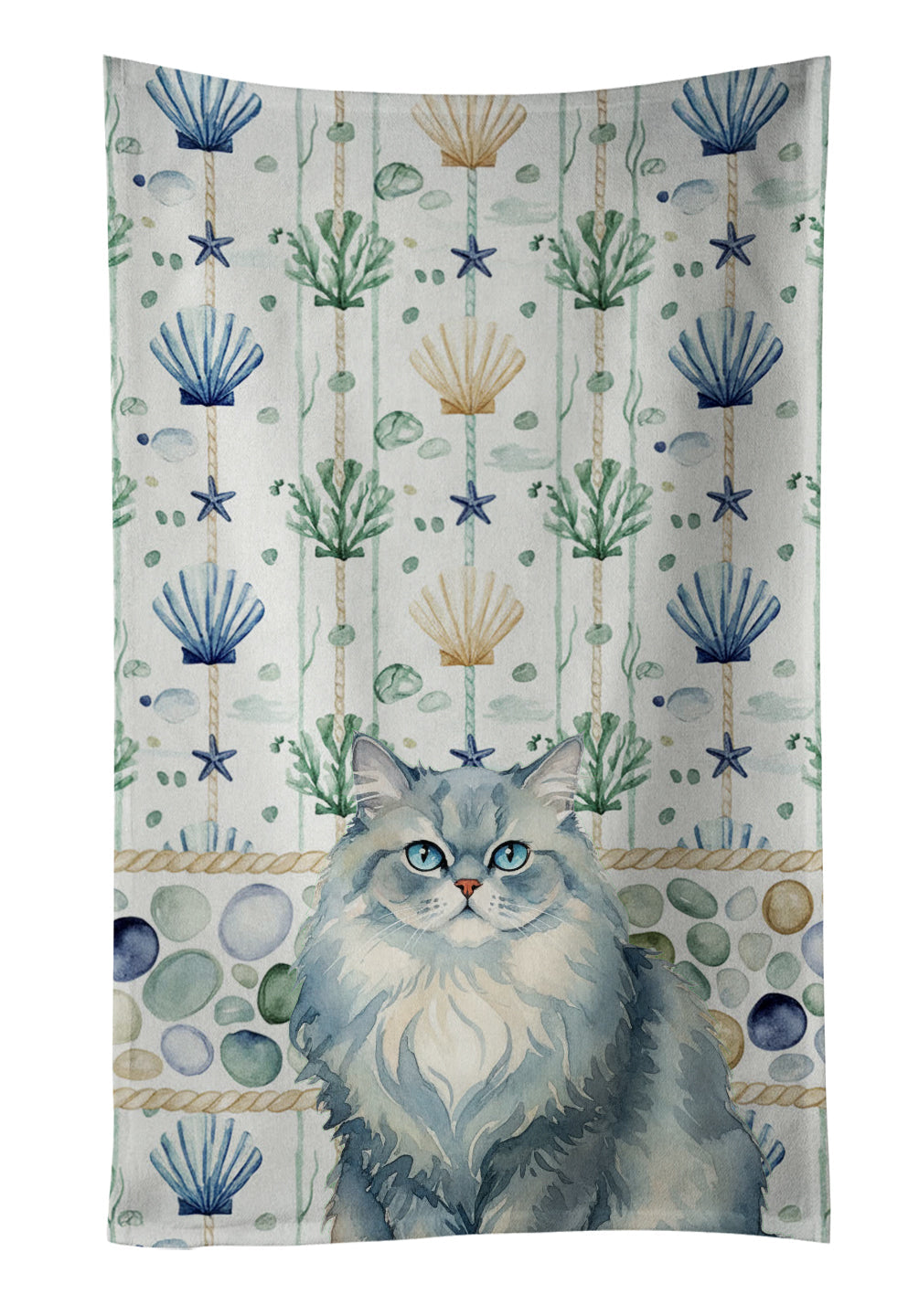 Kitchen Towel featuring breed specific Persian Blue artwork. Bring cozy everyday charm to your sink or powder room with a plush velour towel featuring original watercolor artwork. The front is a soft, color-rich minky polyester that polishes glassware to a brilliant shine; the back is 100% white cotton terry loop for quick absorbency on hands, dishes, and counters. Artwork is dyed into the fibers for lasting color that won’t crack or peel. Finished edges keep the shape wash after wash. Size: 15" x 25". Machine wash; tumble dry low. Designed and printed in the USA.