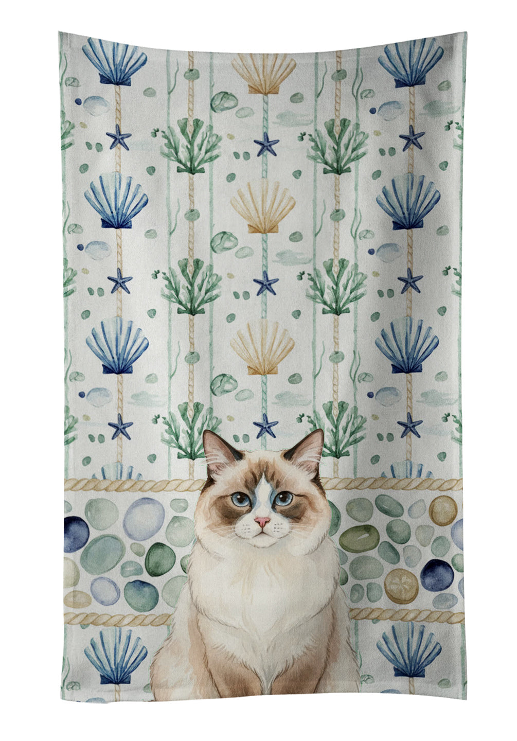 Kitchen Towel featuring breed specific Ragdoll Bicolor artwork. Bring cozy everyday charm to your sink or powder room with a plush velour towel featuring original watercolor artwork. The front is a soft, color-rich minky polyester that polishes glassware to a brilliant shine; the back is 100% white cotton terry loop for quick absorbency on hands, dishes, and counters. Artwork is dyed into the fibers for lasting color that won’t crack or peel. Finished edges keep the shape wash after wash. Size: 15" x 25". Machine wash; tumble dry low. Designed and printed in the USA.