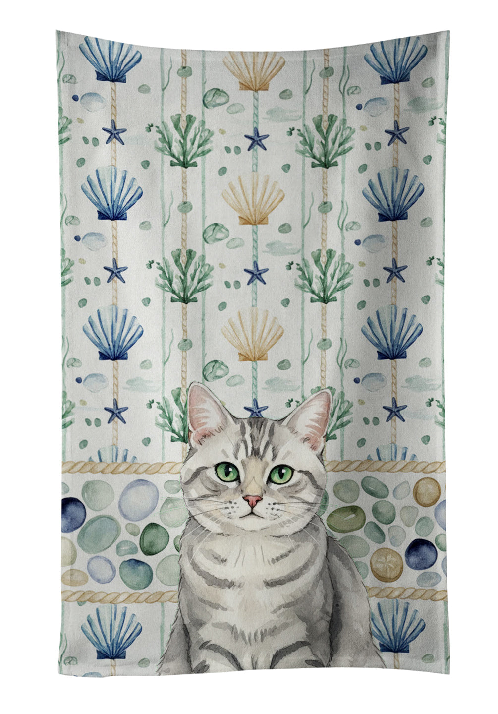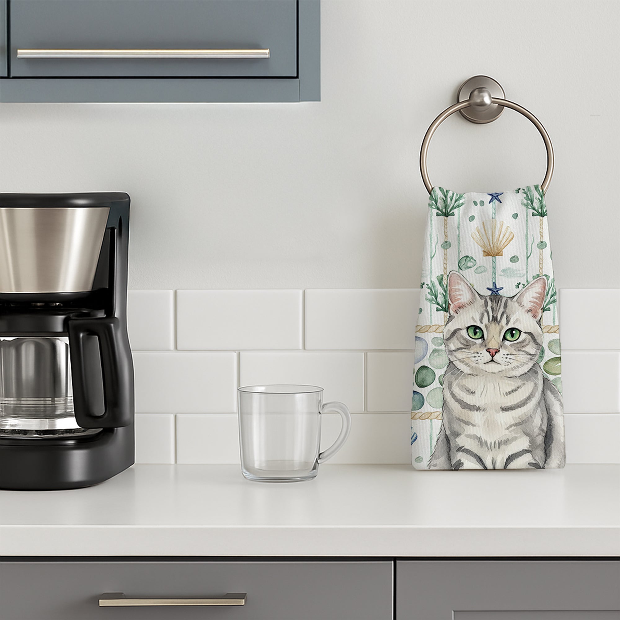 Kitchen Towel featuring breed specific Silver Mackerel Tabby artwork. Bring cozy everyday charm to your sink or powder room with a plush velour towel featuring original watercolor artwork. The front is a soft, color-rich minky polyester that polishes glassware to a brilliant shine; the back is 100% white cotton terry loop for quick absorbency on hands, dishes, and counters. Artwork is dyed into the fibers for lasting color that won’t crack or peel. Finished edges keep the shape wash after wash. Size: 15" x 25". Machine wash; tumble dry low. Designed and printed in the USA.