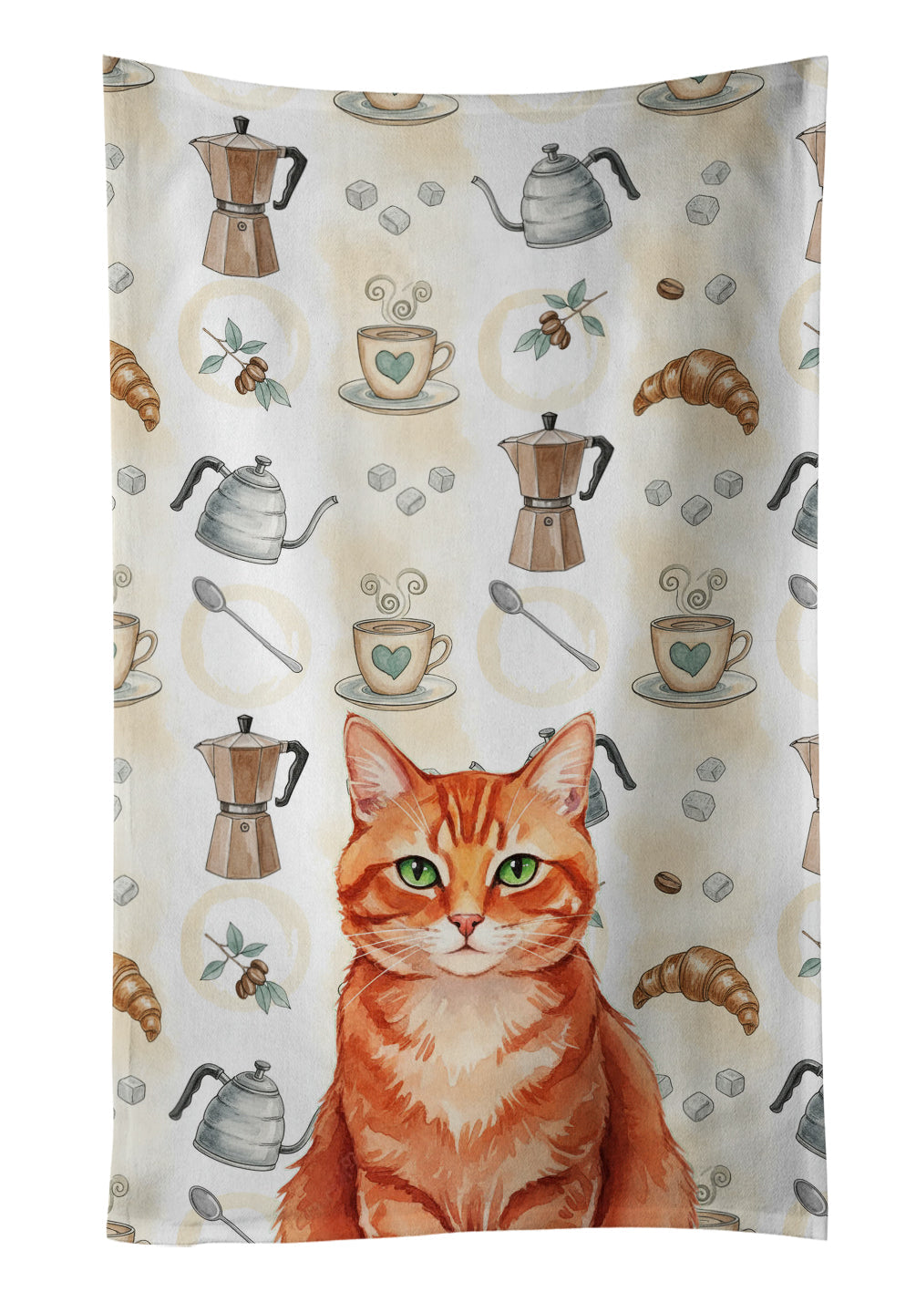 Solid Red Ginger Cat Coffee Time Kitchen Towel