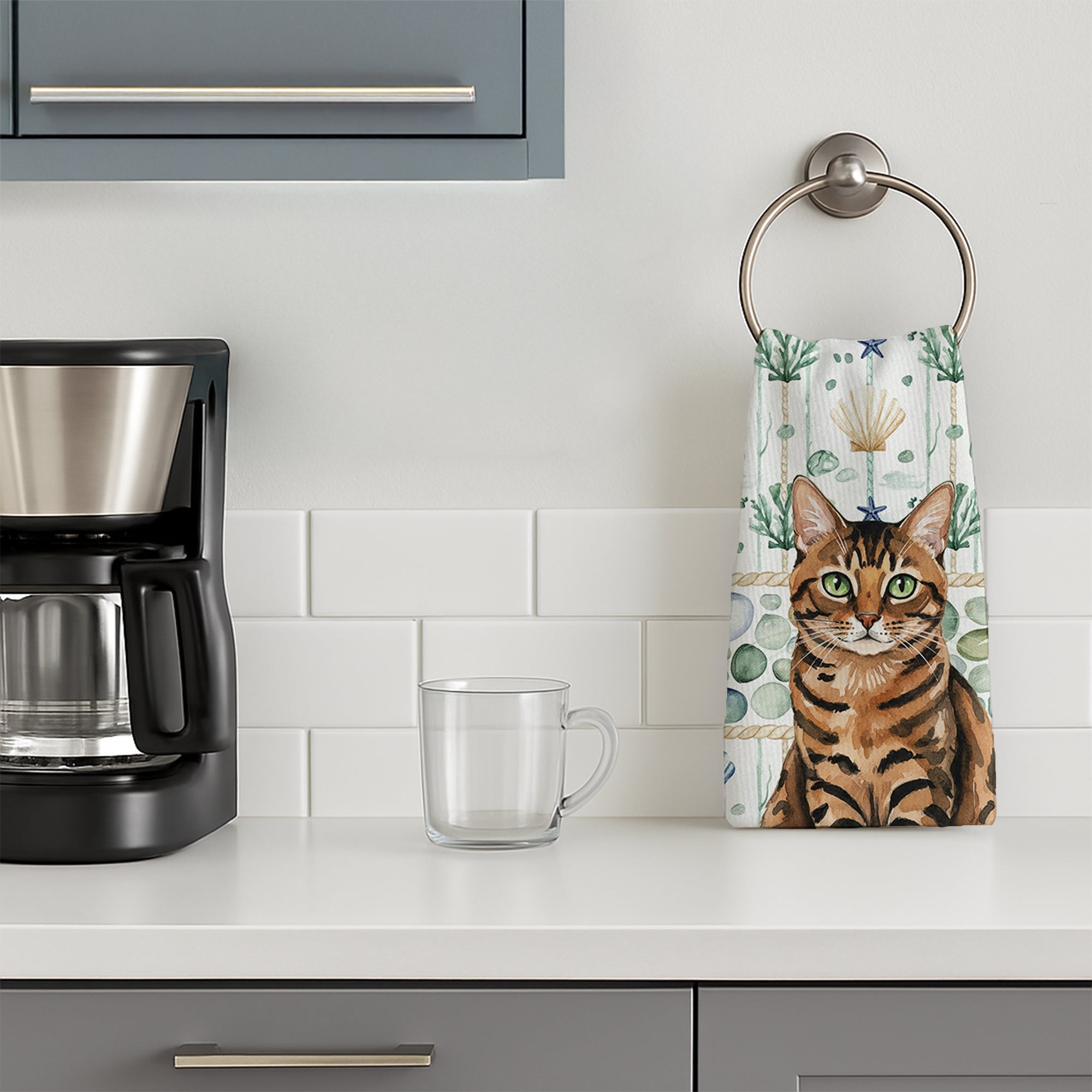 Spotted Tabby Brown Cat Coastal Sea Glass Kitchen Towel